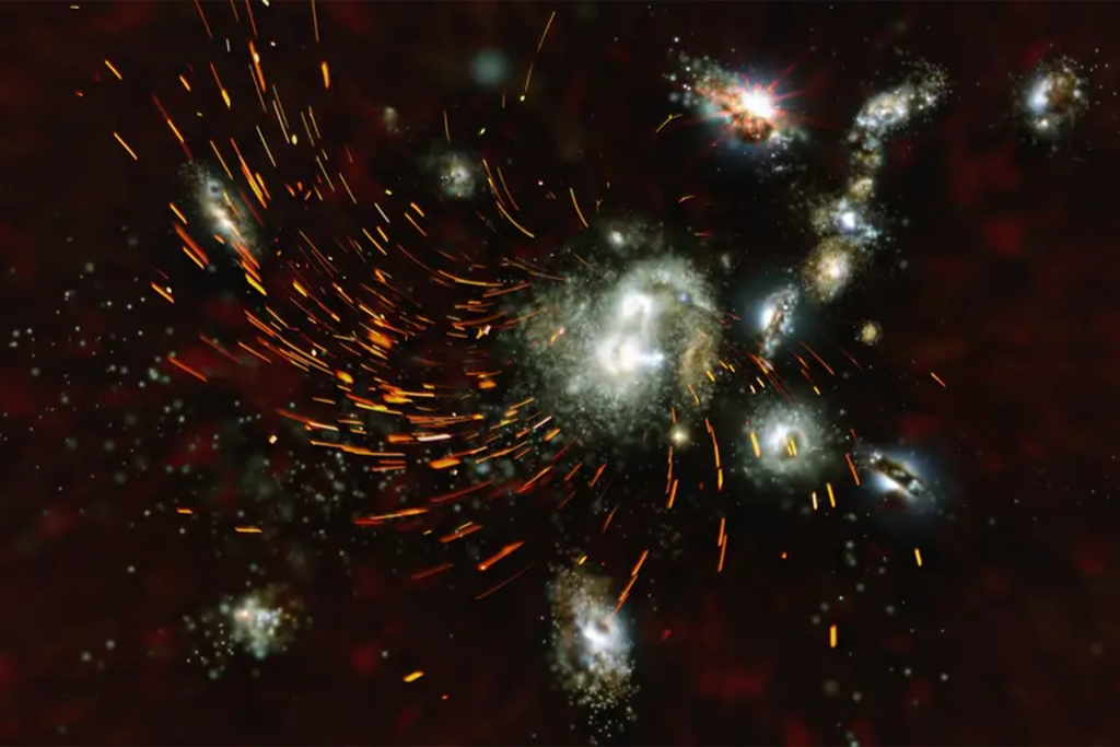 - Wie sich riesige Galaxien nur 1,4 Milliarden Jahre nach dem Urknall bilden konntenAuf den Punkt gebracht Die Lösung eines kosmischen Rätsels Eine überraschende Beobachtung bereitet Astronomen seit zwei Jahrzehnten Kopfzerbrechen: Nur wenige Milliarden Jahre nach dem Urknall existierten bereits massereiche und entwickelte Galaxien. Forschende hatten erwartet, in dieser frühen Phase der Geschichte unseres Universums nur Galaxien mit jungen Sternen und aktiver Sternentstehung… Read more »